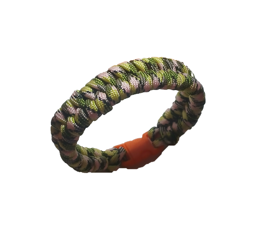 Ett nyproducerat och unikt paracordarmband knutet i det dekorativa Fishtail-mönstret. Armbandet är tillverkat i paracord typ III, vilket ger hög slitstyrka, stabil form och god komfort. Färgkombinationen i gröna och ljusa toner ger ett modernt och friluftsinspirerat uttryck som passar både till vardag och fritid.