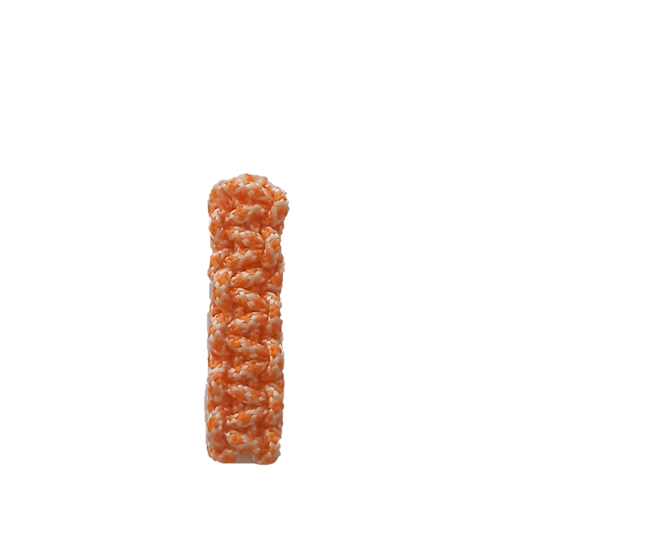 Detta är en provbit i paracord som visar färgkombination, struktur och knyt mönster. Själva armbandet tillverkas först vid beställning och anpassas efter kundens önskade storlek. Paracord är ett starkt och slitstarkt material som ger ett hållbart och bekvämt resultat när armbandet är färdigknutet. Provbiten gör det möjligt för kunden att se hur färgen och flätningen ser ut i verkligheten innan beställning slutförs.